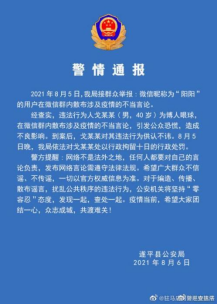 8月5日,驻马店市遂平县公安局接到群众举报:微信昵名称为“阳阳”的用户在微信群内散布涉及疫情的不当言论,引发公众恐慌,造成不良影响。