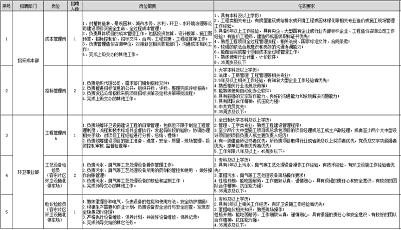 河北雄安人力资源服务有限公司(以下简称雄安人力公司)根据工作需要,现面向社会公开招聘业务外包员工。工作地点在雄安新区,从事财务成本管理、招标管理、环卫板块工程管理、容东片区环卫设施检修和园林绿化等相关工作。