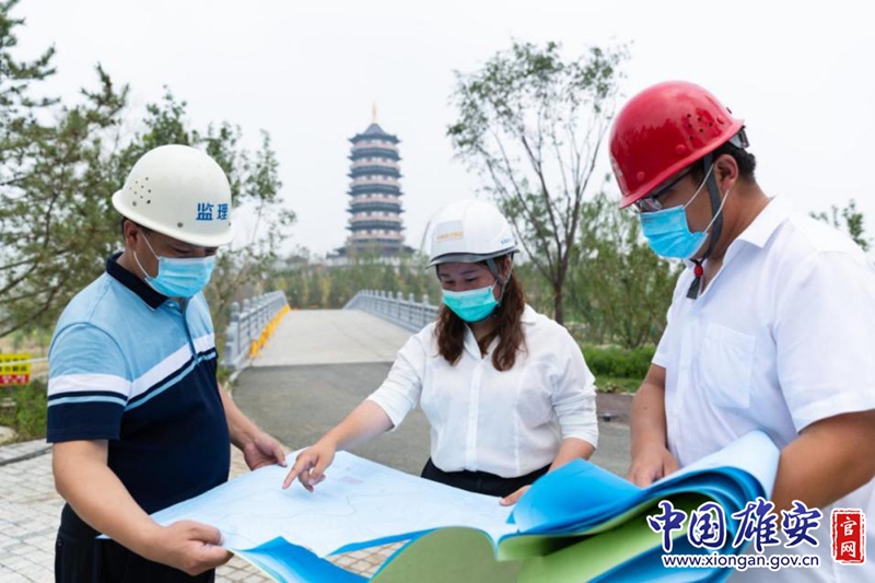 武芳芳在雄安悦容公园项目现场进行工作交流。中国雄安官网发