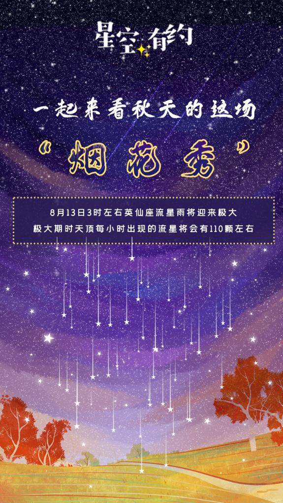 英仙座流星雨和象限仪座流星雨、双子座流星雨因流量大且稳定,被并称为北半球三大流星雨。英仙座流星雨活跃期很长,从7月17日持续到8月24日。“根据国际流星组织的预报,本次英仙座流星雨的极大期出现在北京时间8月13日3时左右,极大期时天顶每小时出现的流星将会有110颗左右。”王科超说。
