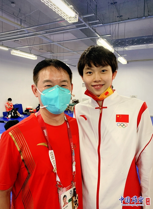 王爱民与爱徒杨浚瑄在2020东京奥运会上合影。中国雄安官网发