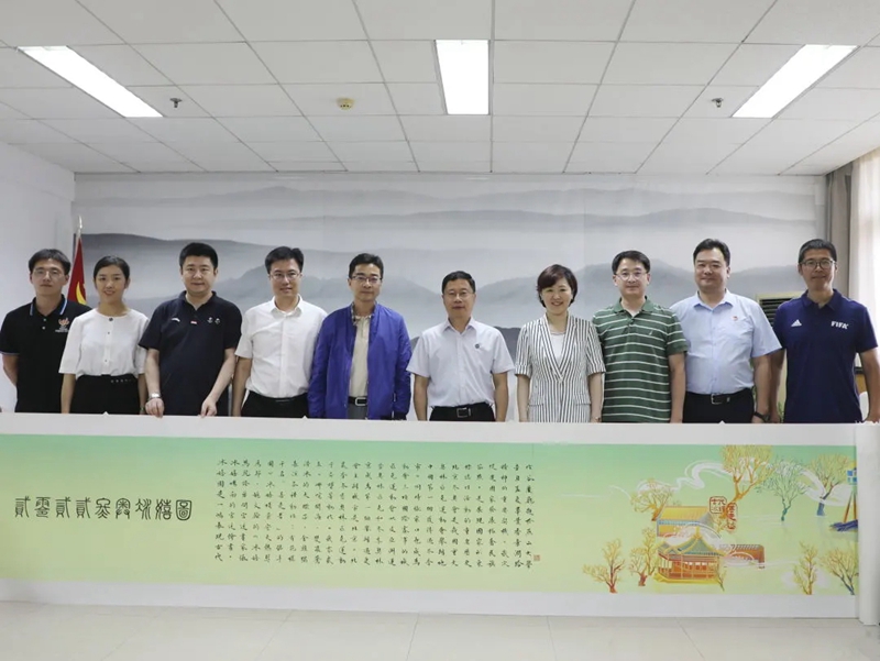 2021年7月15日,北京冬奥组委志愿者部、共青团河北省委、清华大学团委一行来到燕山大学开展冬奥志愿服务工作调研考察,燕山大学党委书记赵险峰将巨幅插画捐赠给北京冬奥会组委会。