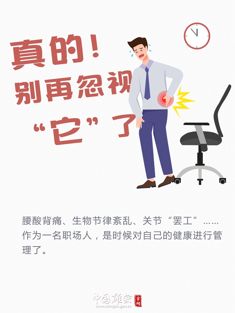 腰酸背痛、生物节律紊乱、关节“罢工”……作为一名职场人,是时候对自己的健康进行管理了。