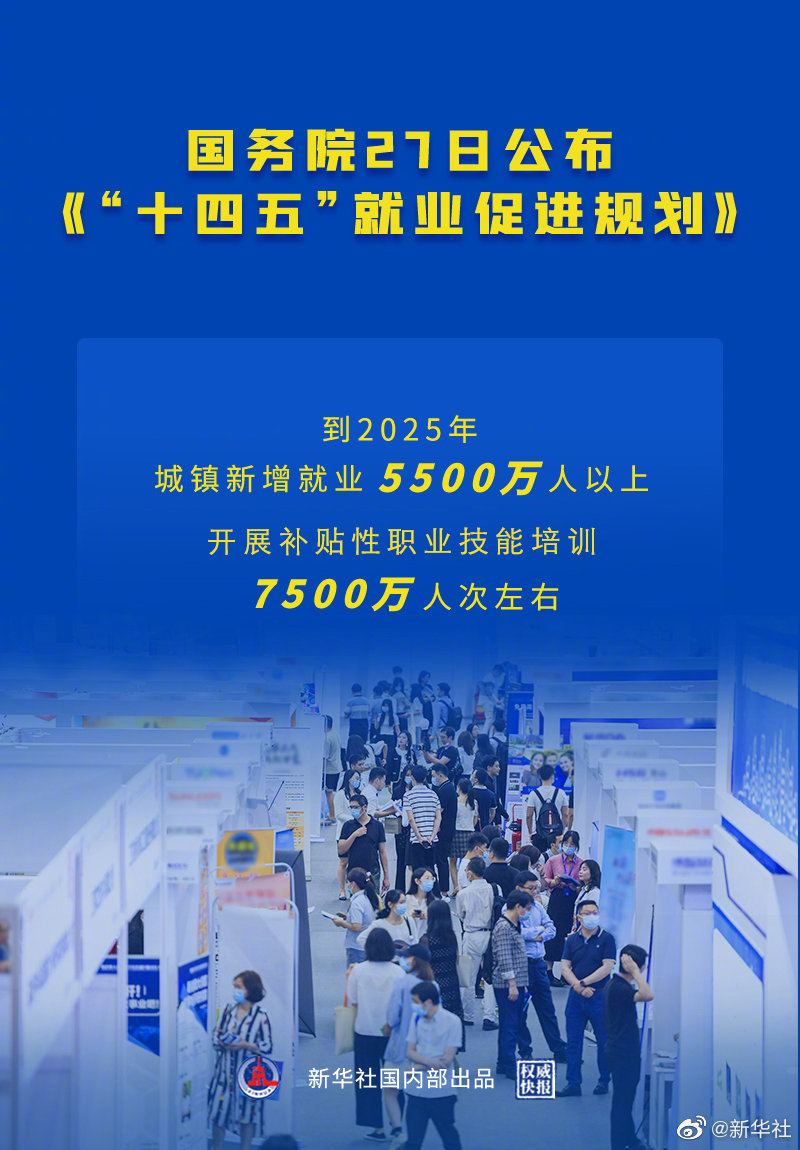 国务院27日公布的《“十四五”就业促进规划》提出,将就业优先政策置于宏观政策层面并持续强化,同时提出了健全就业目标责任考核机制、实施灵活就业人员和新就业形态劳动者支持保障计划、广泛开展新业态新商业模式从业人员技能培训、强化城镇青年就业帮扶等一系列促进高质量就业的新举措。(新华社 记者姜琳、安蓓;海报设计杨轶群 )