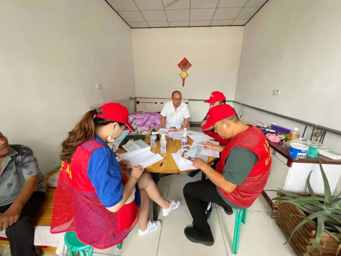 县委常委、政府副县长鲁伟督导工作队员入户表格填写情况。