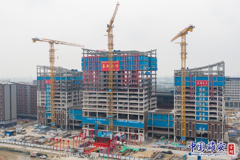 雄安商务服务中心是雄安新区首个标志性城市建筑群,也是雄安新区首批率先开工的房建项目。雄安商务服务中心三标段位于雄安新区容东片区,总建筑面积10.4万平方米,地下2层,地上16层,分A、B、C三座塔楼,最高建筑高度为80米,包含多功能厅、宴会厅、客房等服务设施。项目建成后,将有力补充雄安新区近期急需的各项商务服务配套功能,为全面启动容东片区、启动区建设提供坚强支撑。