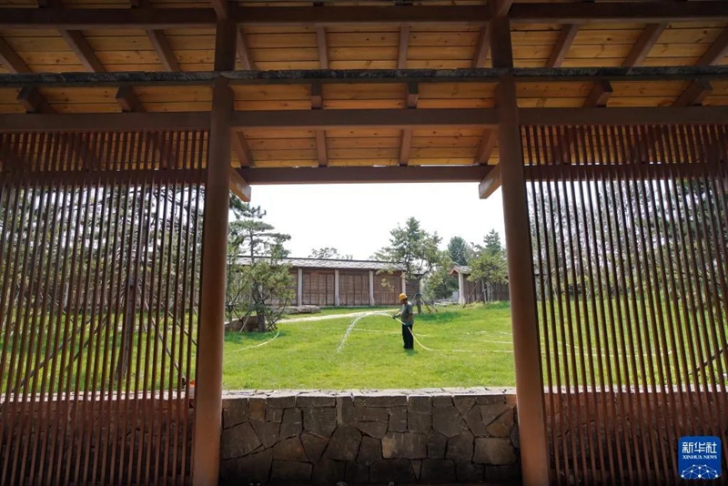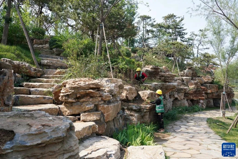 9月1日,中建三局三公司工人在雄安新区悦容公园北苑三区内打理种植的花卉。新华社记者牟宇 摄