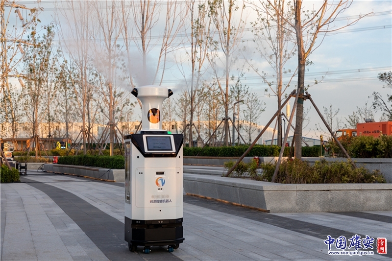 “雄安之夜”活动现场的自动导航喷雾消毒机器人。中国雄安官网毛鹤然 摄
