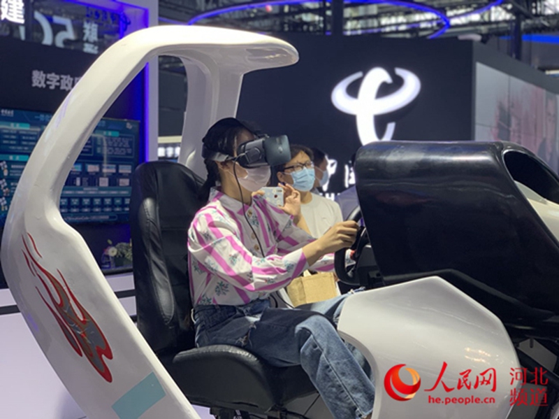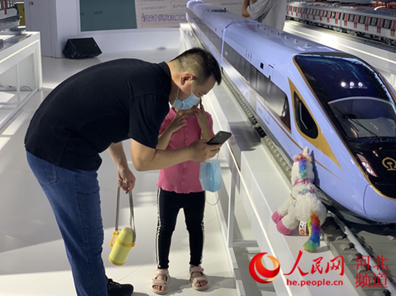8日上午,市民白女士正带着3岁的儿子在石家庄正定国际会展中心中车展位游览。“我是在微博上看到了数字经济博览会的资讯,就预约好了带着孩子过来看看。”