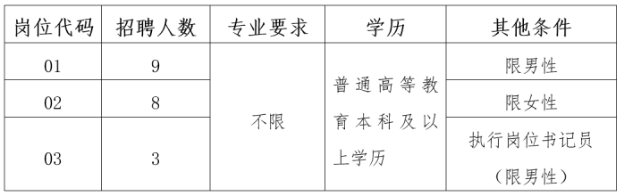 河北雄安新区基层人民法院公开招聘聘用制书记员岗位表