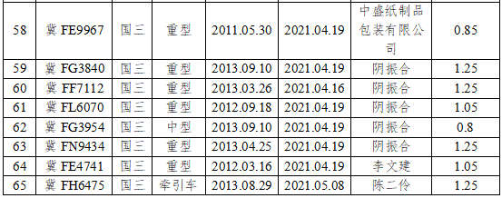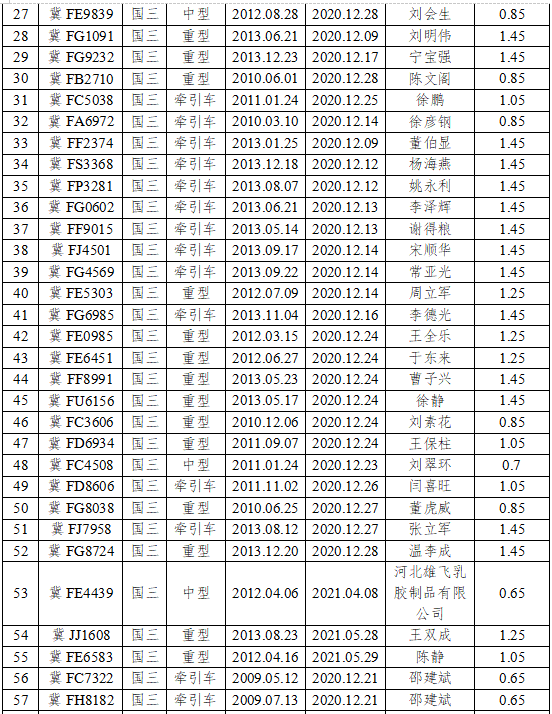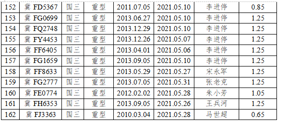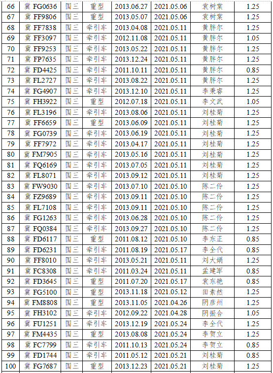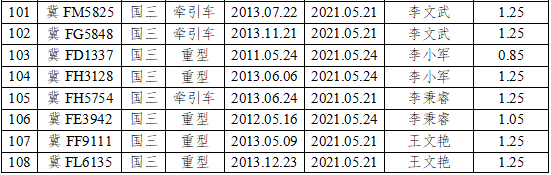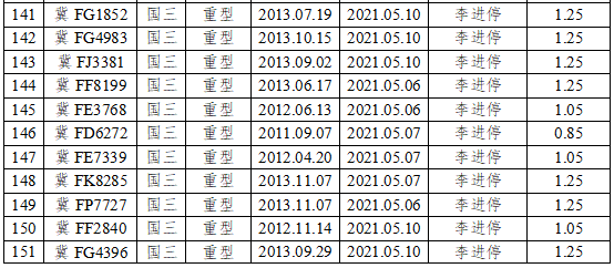 2.第一批公示车主李法伦的冀FC4073货车注册日期由2010.08.24调整为2011.02.15,奖补标准由0.85万元调整为1.05万元。
