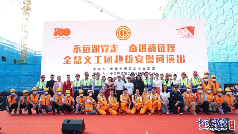 中国雄安官网9月17日电(崔利杰)9月15日下午,中建二局三公司百日攻坚劳动竞赛表彰会暨“永远跟党走,奋进新征程”中华全国总工会文工团赴雄安慰问演出。
