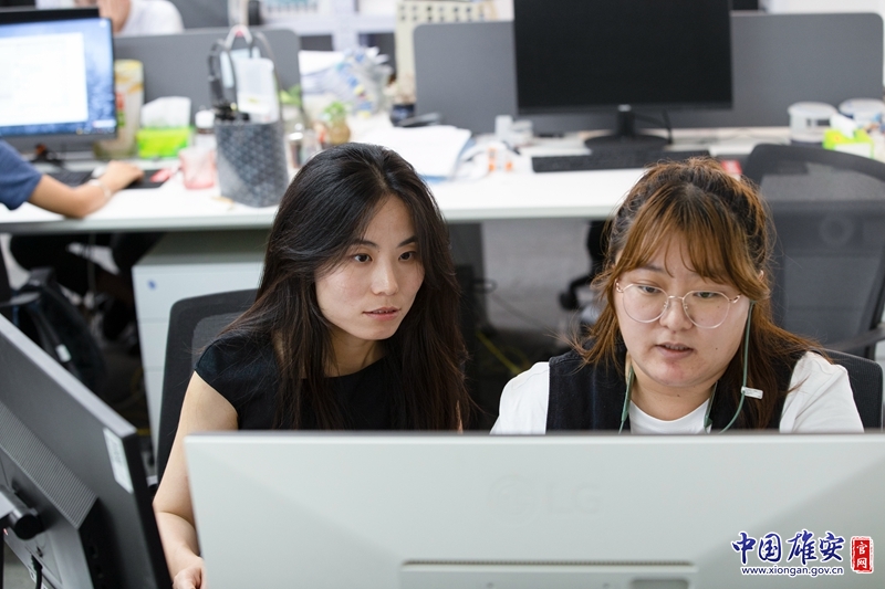 王瑾瑾(左一)正在与同事沟通设计方案。中国雄安官网牛思佳 摄
