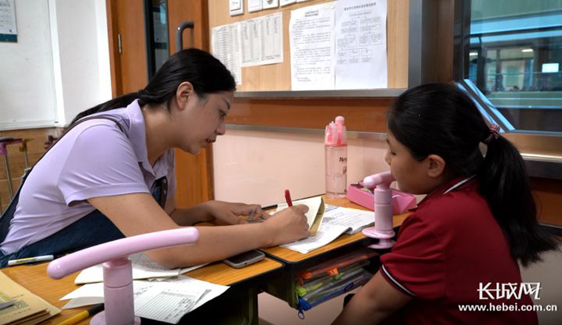 石家庄外国语教育集团的老师在课后服务时间为学生“一对一”辅导。长城网记者 武新杰 摄