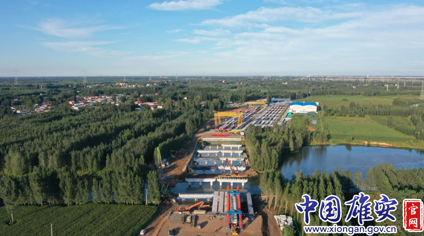 俯瞰EA1东延桥梁工程施工现场。中国雄安官网发