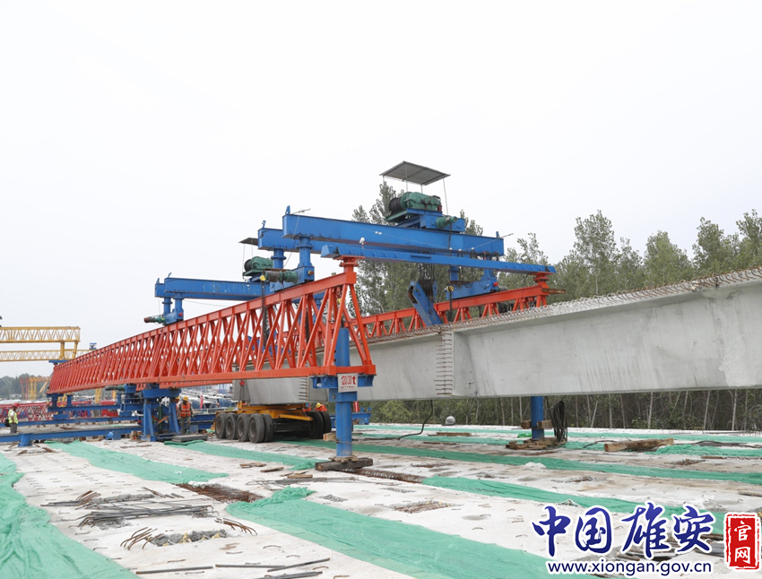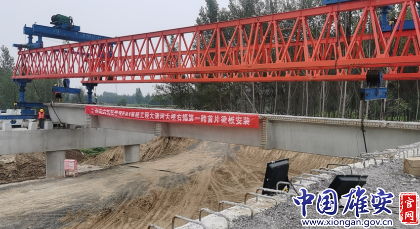 EA1东延桥梁工程大清河段首榀箱梁架设成功,进入架梁施工阶段。中国雄安官网发