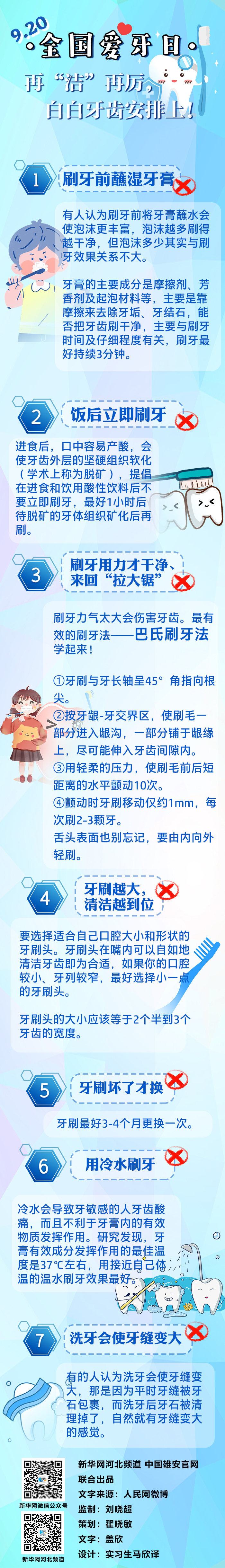 9月20日是全国爱牙日,你知道吗?有一些我们习以为常、以为正确的刷牙方式其实是错误的,一起来看看吧!