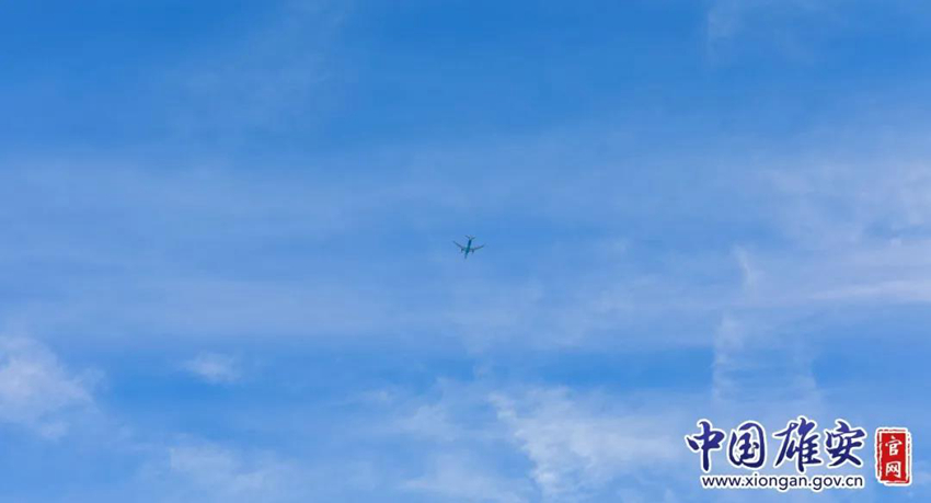 一架飞机轻盈飞过雄安上空
