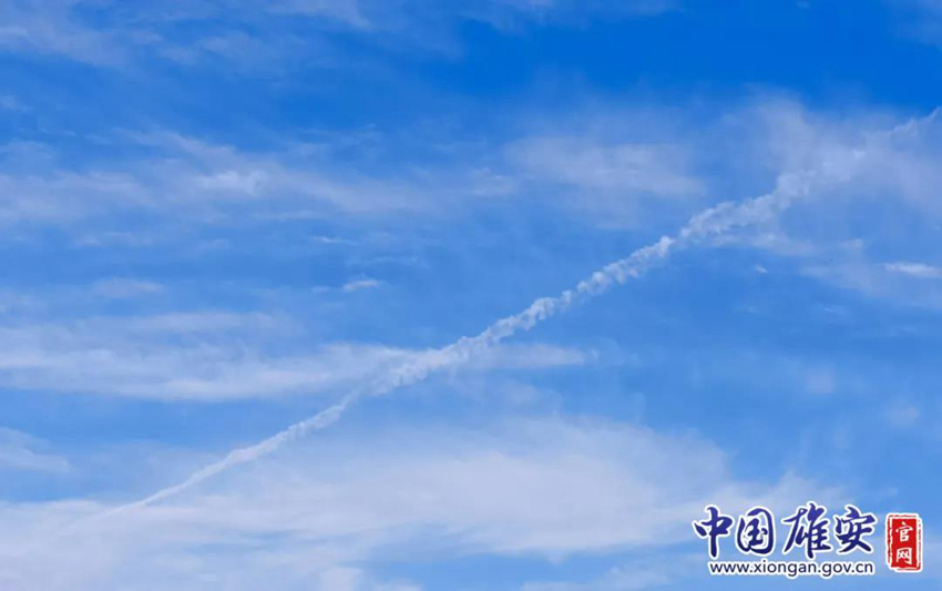 飞机划过的线条宛如丝带,装饰着天空。中国雄安官网王晓雨 摄
