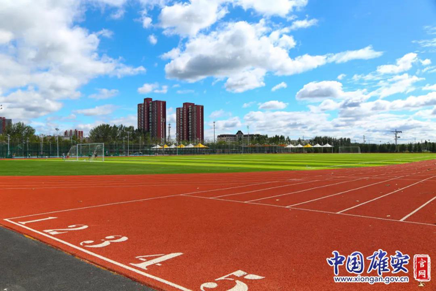 安新大健康体育公园,红色跑道与蓝天白云相映成趣。白建峰 供图