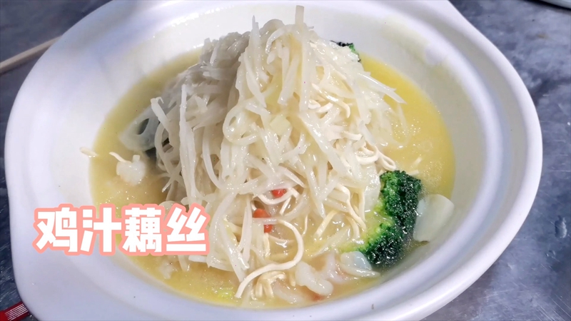 以醇厚鲜香的鸡汤做底,配以藕丝熬煮