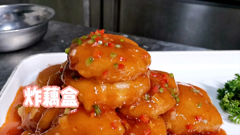 夹入满满肉馅、裹着面糊的藕盒在油锅里翻腾