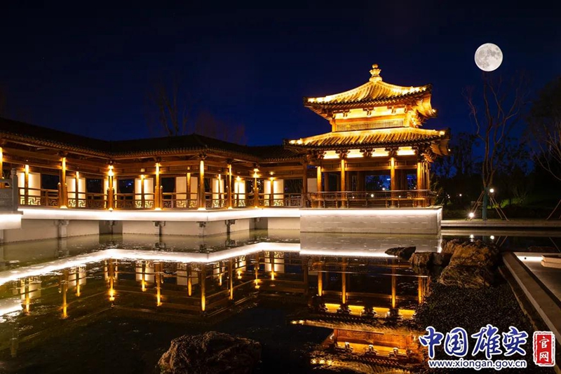 天上圆月,人间灯火,璀璨辉映。中国雄安官网牛思佳 摄