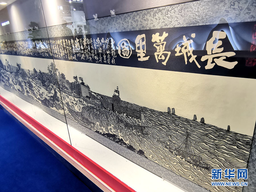 巨幅剪纸长卷作品《长城万里图》。新华网崔利杰 摄