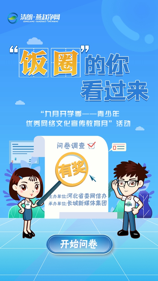 你有没有喜欢的偶像?你喜欢他(她)的理由是什么?你是否有加入偶像的后援会或者类似粉丝团体的经历?为了解我省追星群体以及“饭圈”现状,倡导青少年理性追星,对“饭圈”不良网络文化说“不”,河北省委网信办特开展“‘饭圈’的你看过来”问卷调查活动,希望能得到您的真实想法和宝贵意见,快来为营造我省清朗网络空间出一份力吧!(记者 周宏彩 赵文强 张雅品 张佳颖)