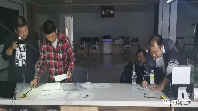 安新县行政审批局工作人员为县国企改制营业执照办理提供延时服务。