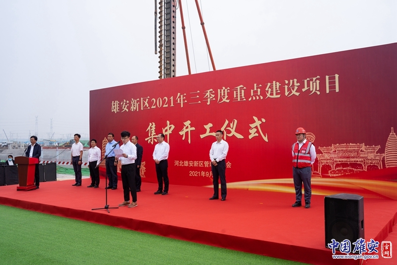 中国雄安官网9月28日电(崔利杰)金色九月,秋高气爽!9月28日,雄安新区2021年三季度重点建设项目集中开工仪式举行。新区三季度集中开工21个重点建设项目,总投资215亿元,年度计划投资70亿元,这标志着新区重点项目建设又迈上了一个新台阶,掀起了高标准高质量推进雄安新区建设的新高潮。雄安新区党工委委员、管委会副主任吴海军出席开工仪式,雄安新区改革发展局局长于国义主持开工仪式。