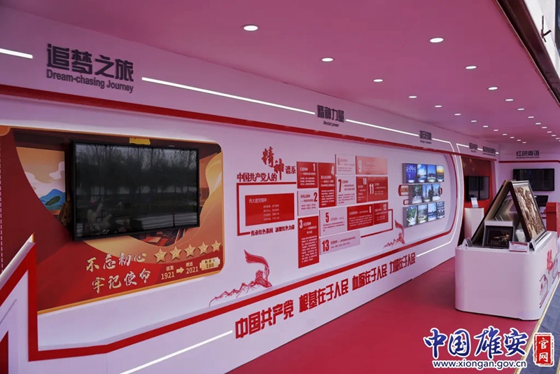 车内设置有“追梦之旅”“精神力量”“雄安印象”等