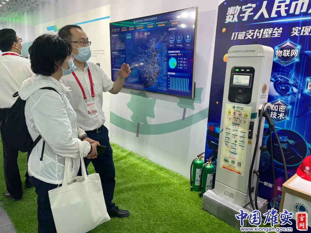 国网雄安新区供电公司“数字人民币充电桩”亮相北京新能源汽车产业发展成果展。中国雄安官网发