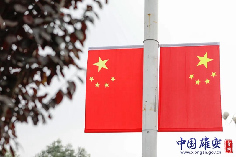 安新县街道两侧挂满国旗。中国雄安官网毛鹤然 摄