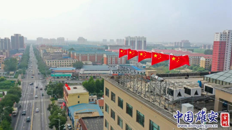 安新县街道国旗飘扬。中国雄安官网刘东尧 摄