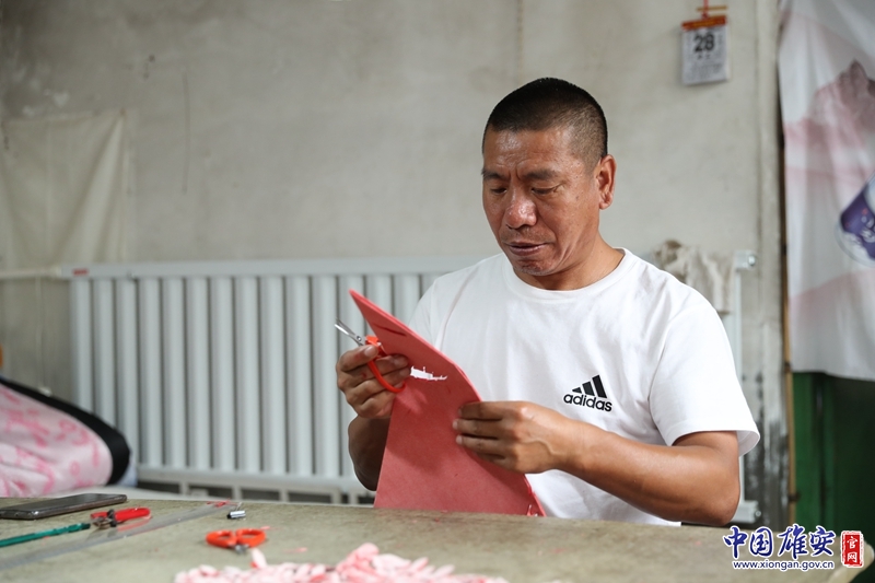 张文龙的左手手指上有很多针孔状的小伤疤,因为经常左手拿纸,右手持剪刀,剪到细微之处,锋利的剪刀头隔着纸会扎在左手手指上。实习生赵伟彤 摄