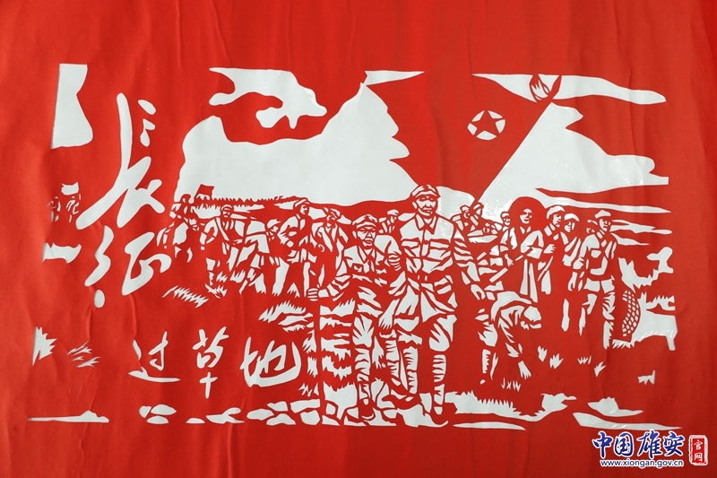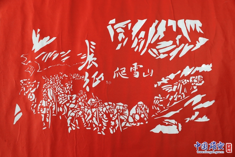 “今年是中国共产党成立100周年,我很早就筹划着剪一些红色系列的剪纸,用剪纸的方式表达对祖国的祝福,希望祖国更强、更美、更繁荣。”张文龙说。图为“长征爬雪山”剪纸作品。实习生赵伟彤 摄