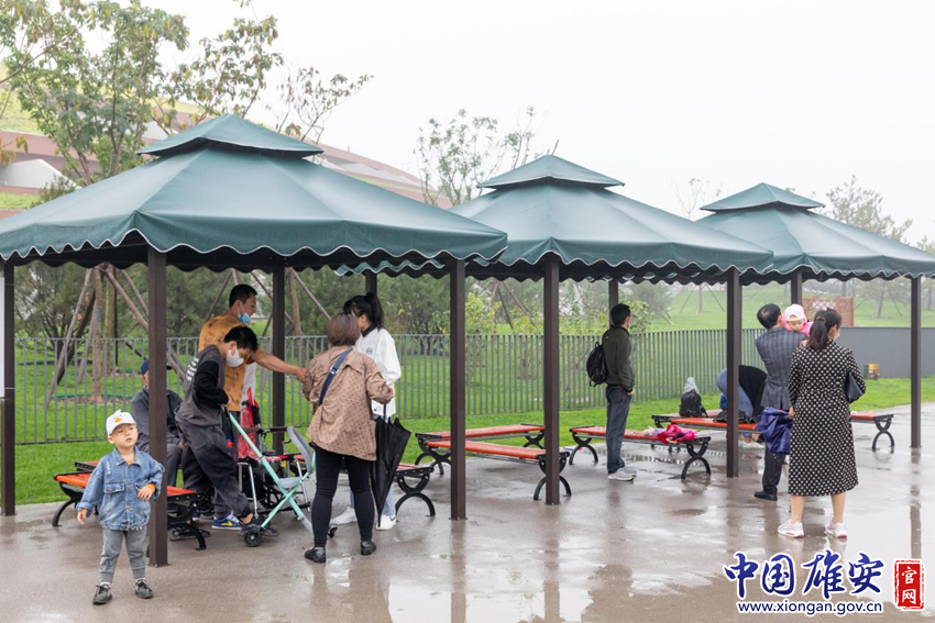 10月3日,雄安新区秋雨绵绵,仍有大量游客来到雄安郊野公园游览。中国雄安官网毛鹤然 摄