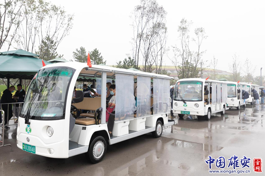 游览车正在等待游客。中国雄安官网毛鹤然 摄
