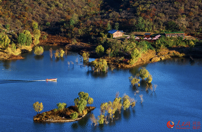 易水湖南侧与狼牙山相连,北侧是紫荆关,西侧是海拔高达1283米的五峰寨,东侧是九龙山。易水湖锁住易水河上游水流汇集成湖,水质清澈纯净,周围环境优美,景色宜人,因与漓江风光相媲美,被称为“北方小桂林”。