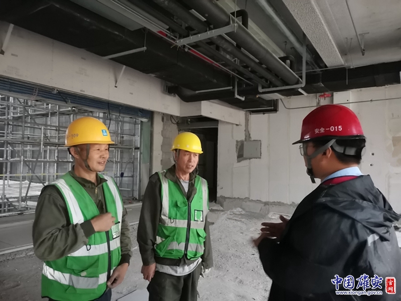 国庆期间,容东片区雄安商务服务中心项目二标段现场管理人员坚守岗位,为工人们讲解安全知识。中建八局供图