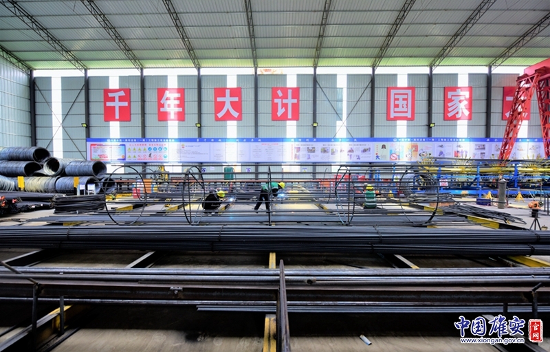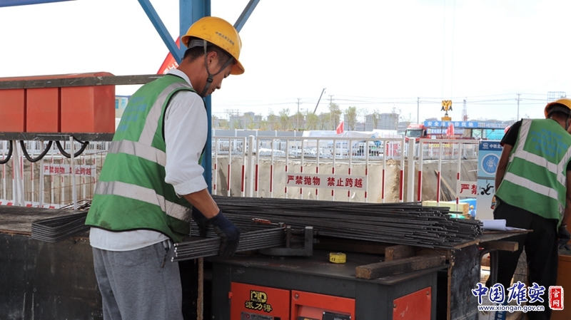国庆期间,中铁北京工程局容东2号地50地块建设者在进行钢筋加工工作。中国中铁供图