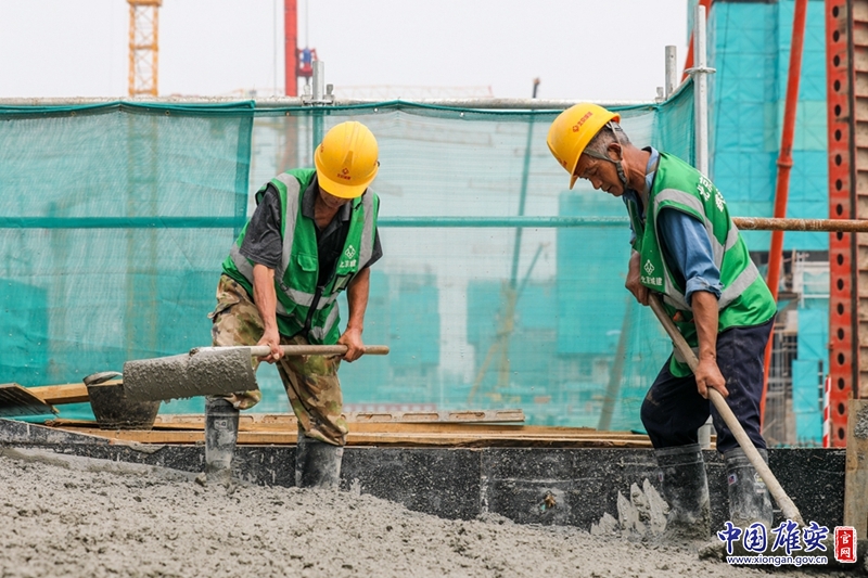 国庆期间,容西片区E单元安置房及配套设施项目建设者依然坚守岗位。北京城建集团供图