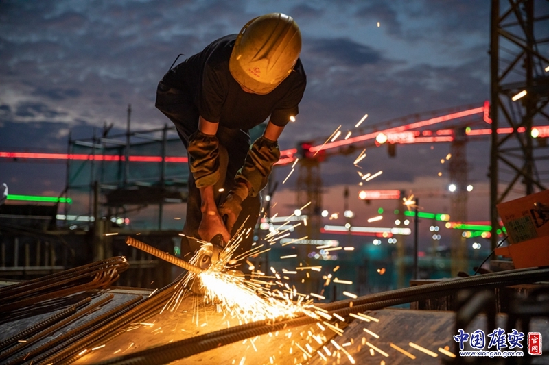 国庆期间,容西片区E单元安置房及配套设施项目建设者在进行切割作业。北京城建集团供图