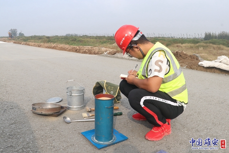 国庆期间,中铁一局启动区临时道路二期工程施工项目建设者在进行路基压实度检测。中铁一局天津公司供图