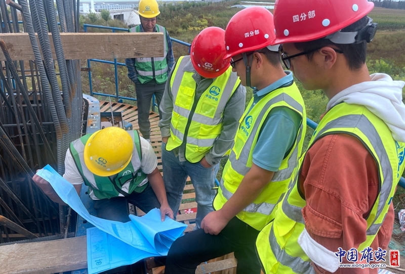 国庆期间,中国中铁雄安R1线三标段中铁一局集团建设者在进行承台施工作业。中国中铁供图