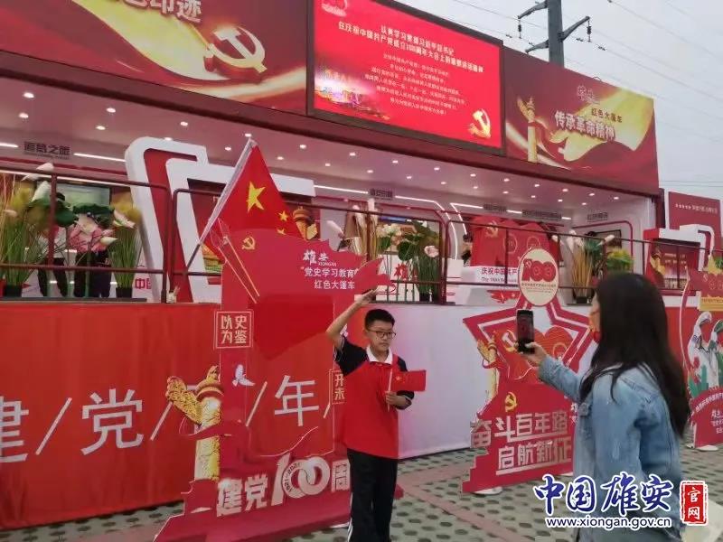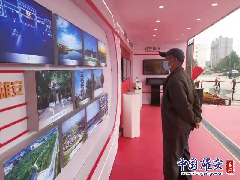 大篷车展区以“建党百年·追梦雄安”为主题,紧紧围绕党史学习教育、雄安红色文化、红色往事、红色历史进行展示宣传。中国雄安官网发