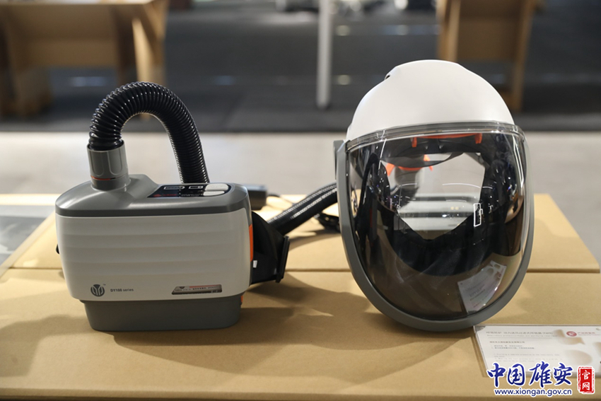 在许多需要佩戴防护面罩的场所,厚重又闷热的普通防护面罩使用感很差,为工作者平添了许多烦恼,而这款过滤式空气呼吸器不仅能够做到360度给风,而且面罩内部清爽不起雾、佩戴起来更加舒适。中国雄安官网实习生赵伟彤 摄