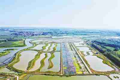 日前,航拍孝义河河口湿地水质净化工程现场。河北日报记者李佳泽 摄