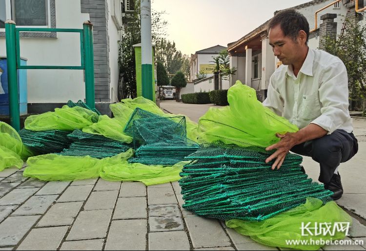 邵小贝在整理捕鱼的地笼。长城网记者郭庆敏 摄